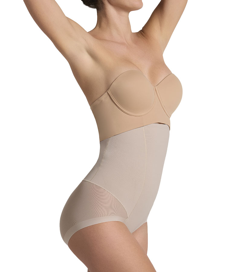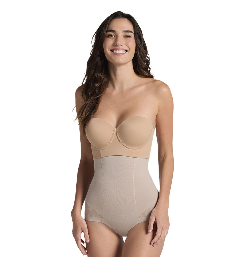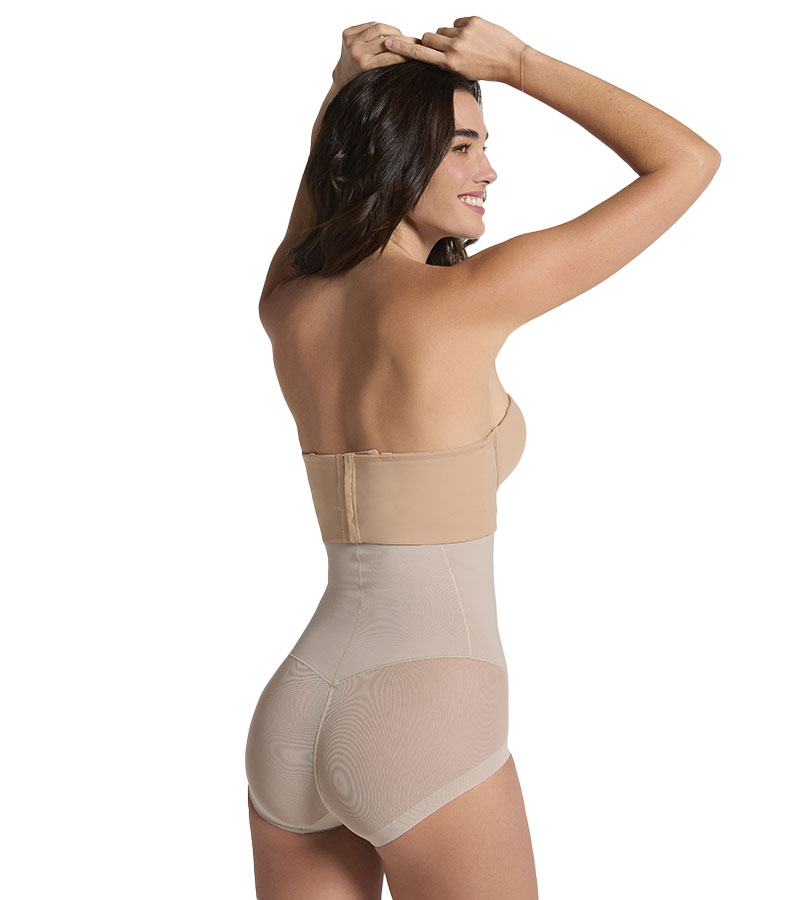 خصر الساعة الرملية: أنسجة PowerSlim® وتصميم مرتفع المدى؛ يجتمعان في هذا المشد لشد الجذع وتسطيح البطن بقوة. يوجد به 3 درزات استراتيجية في الظهر، لنحت الخصر بدقة وبطريقة مثالية لا مثيل لها.