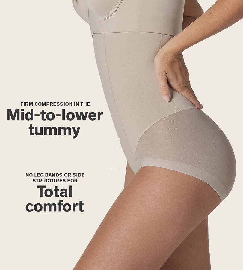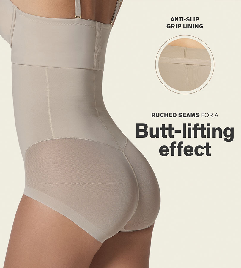 مشد بانتي عالي الخصر بالشد الفائق! يشد الجذع، ويرفع المؤخرة، ويبقى خفياً حتى أسفل أضيق ملابسك اليومية فلن يلحظه آحد.