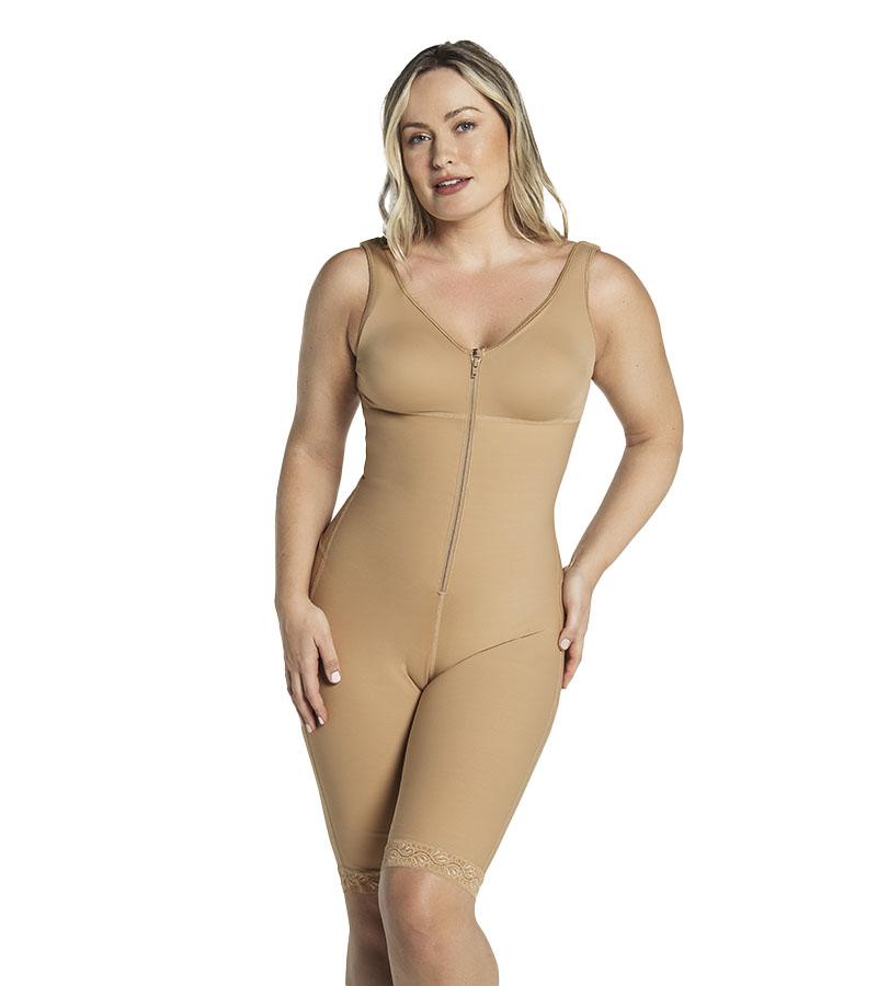 مشد كامل مع حمالة لبعد العمليات الجراحية هو مشد بودي سوت كاملة مغلقة الصدر. يصل طولها لمنتصف الفخذين. رائعة ومثالية لفترات التعافي والتشافي بعد العمليات الجراحية. أمامية الإغلاق بسحاب مبطن لراحتك.