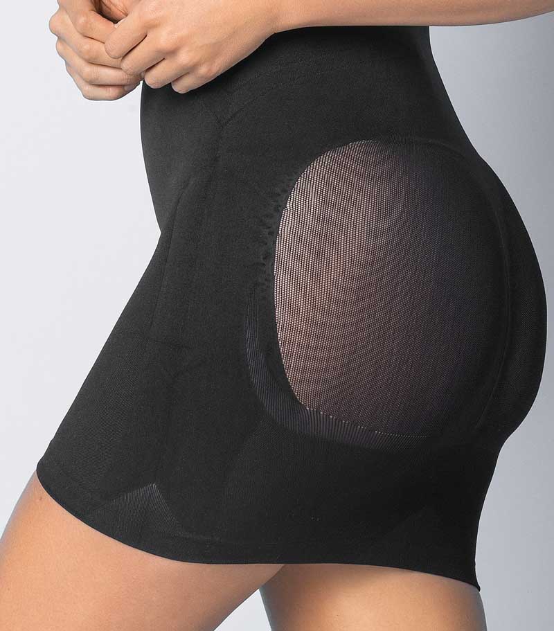 مشد سليب لرفع المؤخرة لا مثيل له! مصنوع من SkinFuse® وهي مادة تحكم مريحة للغاية مع عدد قليل جدًا من اللحامات التي لا يتم اكتشافها تحت الملابس. تم تصميم مشد سليب مع خاصية رفع المؤخرة لإخفاء وشد زوائد الجسم في منطقة البطن والخصر والأفخاذ والظهر, وبالإضافة لتقنية رفع المؤخرة من خلال تصميمه الخاص من الخلف.
