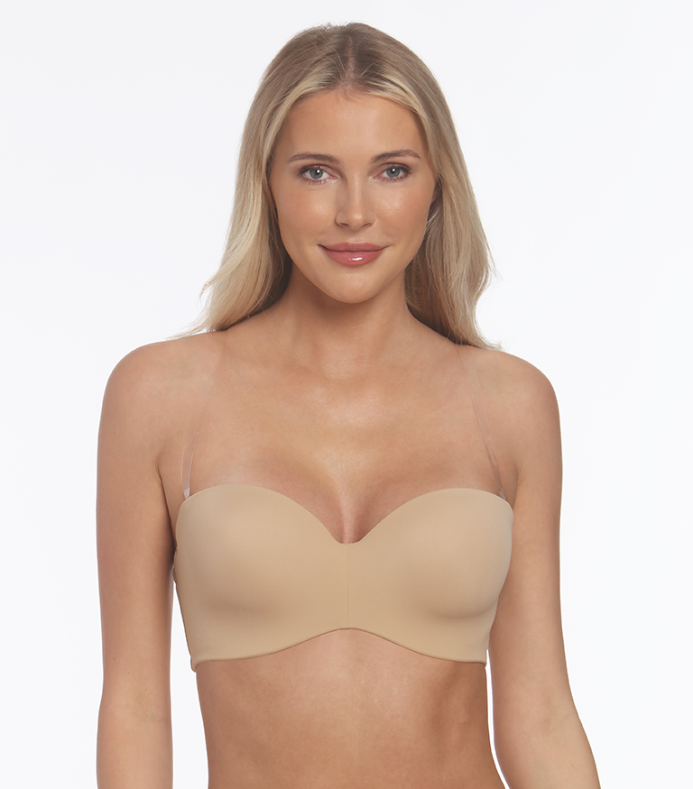 تم تصميم حمالة بيلّا من دومينيك لتوفير الراحة والدعم الكامل مع الثبات التام في مكانها. الأكواب الملساء والمخفية مع الأسلاك تحت الحواف تعمل على تعزيز شكل الصدر وتثبيته بشكل مريح. تأتي الحمالة مع حمالات قابلة للتعديل، شفافة ومتناسبة، بحيث يمكنك تحويل الحمالة إلى عدة أنماط: سترابلس او هالتر أو عبر الظهر بشكل متقاطع أو حمالة واحدة أو الحمالة التقليدية، مما يجعلها الاختيار المثالي لملابسك بدون أشرطة.