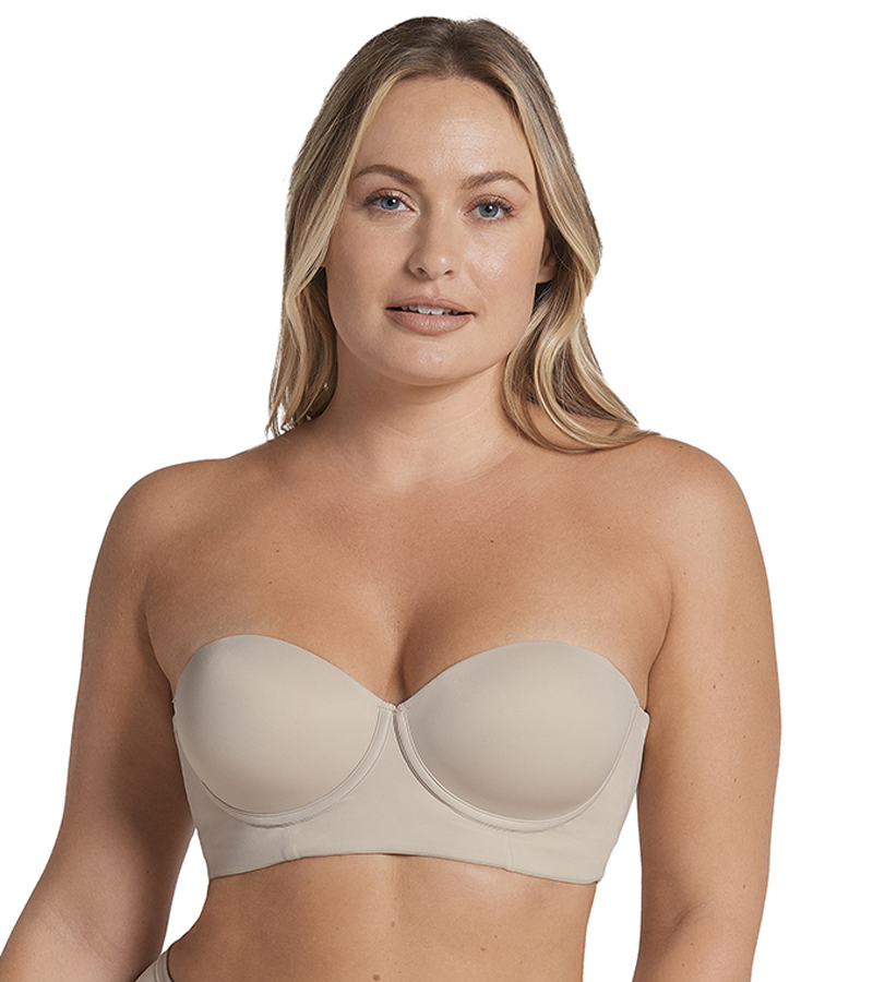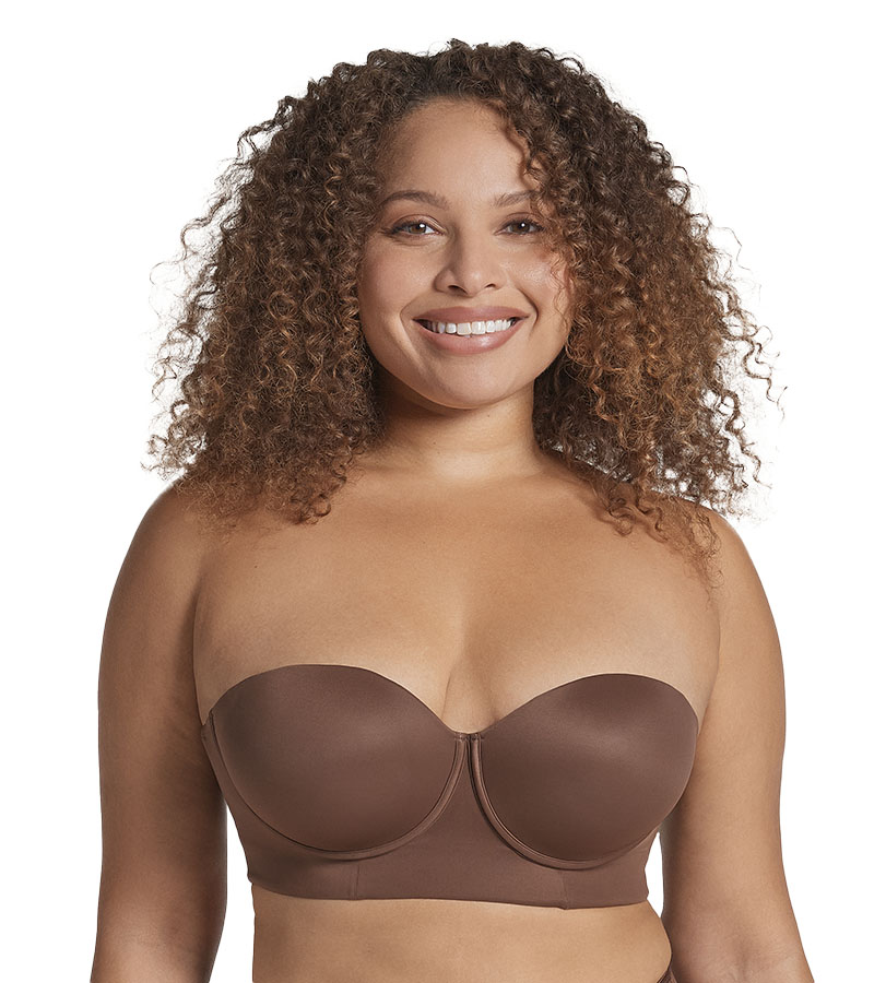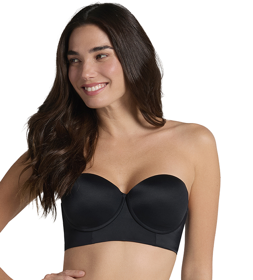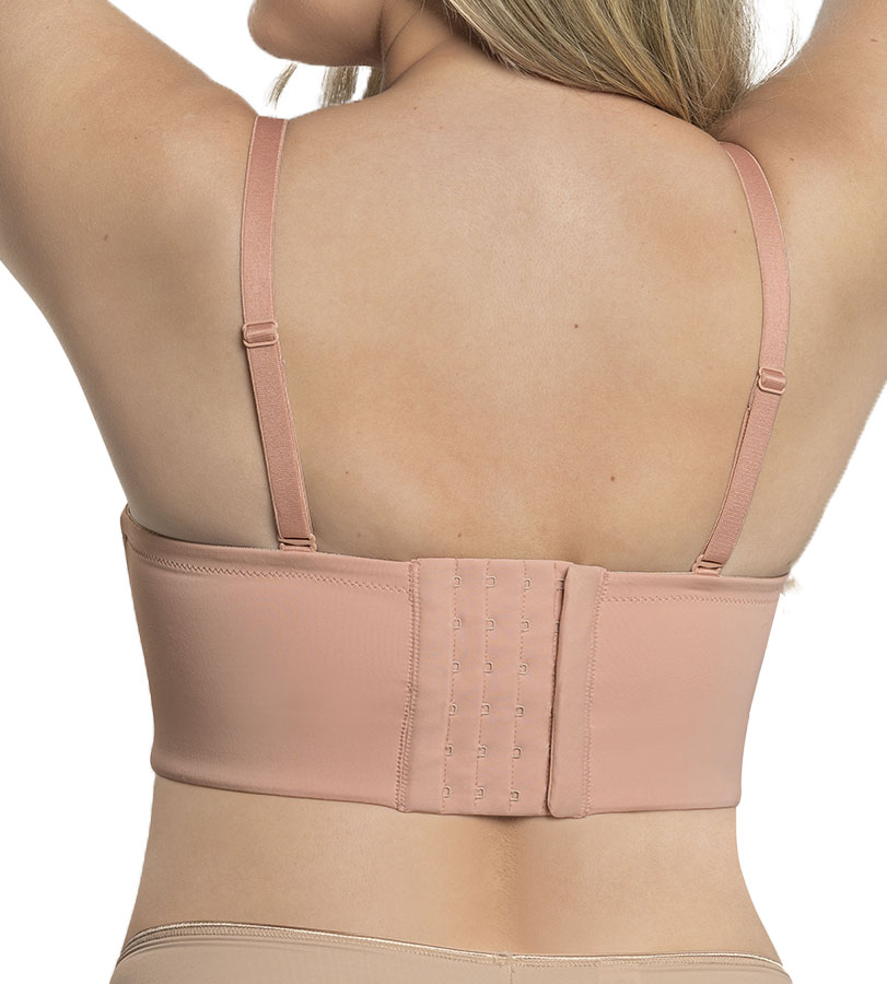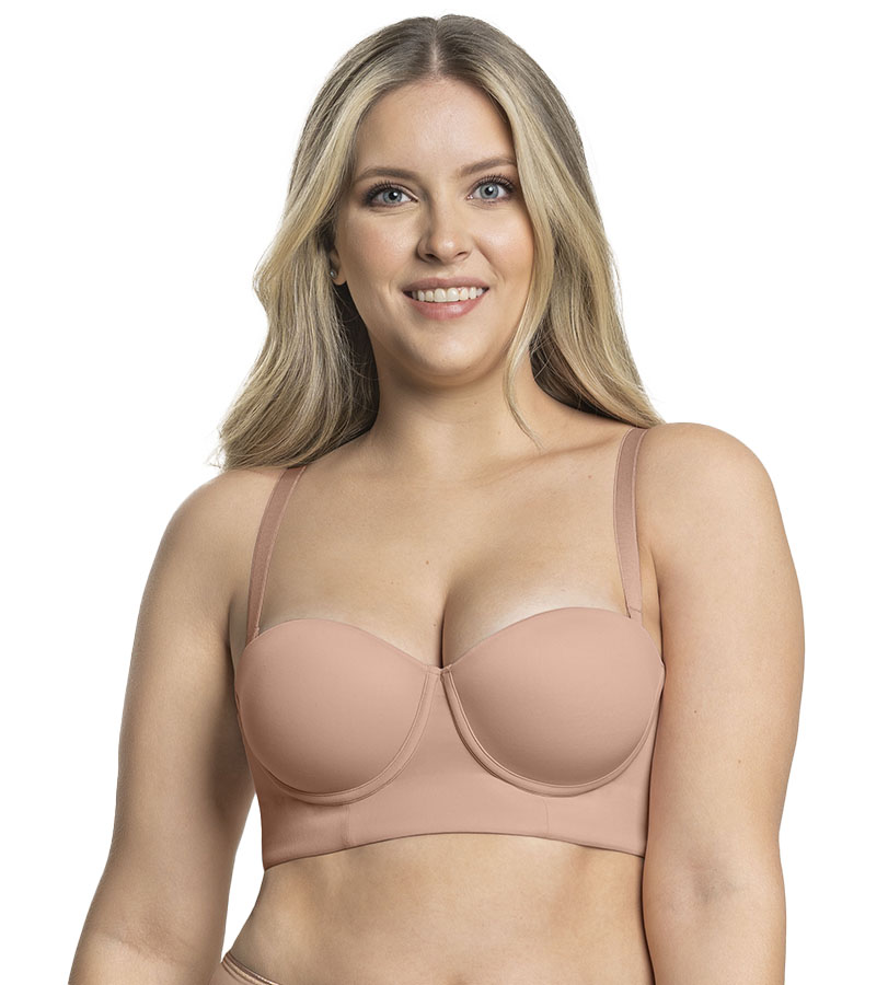تصميم ذكي يرفع الصدر بلا بطانة البوش أب التقليدية. مصممة لترتديها سترابلس، لكنها مزودة بحمالات كتف.