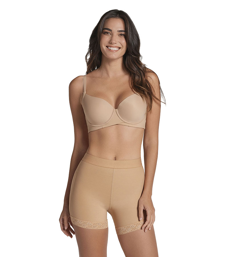 مؤخرة جذابة؟ تقنية MagicUp® في الجانب الخلفي من مشد الشورت -حيث تندمج أنسجة المايكروفايبر بأربطة خاصة- سوف ترفع مؤخرتك وتشدها وتزيدها جاذبية وجمال ونحت.