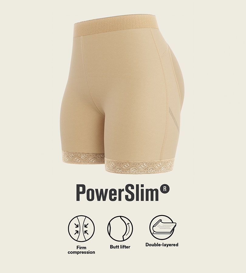 أرداف وخصر وبطن منحوتة بالكامل؟ أنسجة PowerSlim® الضاغطة الخاصة بعلامتنا التجارية سوف تضمن لك النحت الذي ترغبين بكل سهولة.