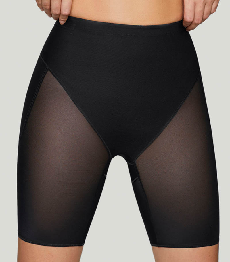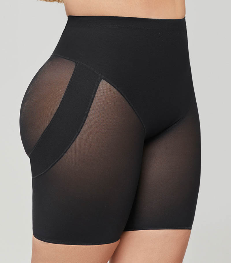 تصميم يخفي السيلوليت: يعمل النصف السفلي الشفاف من مشد الشورت على إخفاء السيلوليت لديك، بالإضافة أيضا لمنع وتخفيف احتكاك الفخذين والحد من التسلخات المترتبة عليه مع الحركة المستمرة.