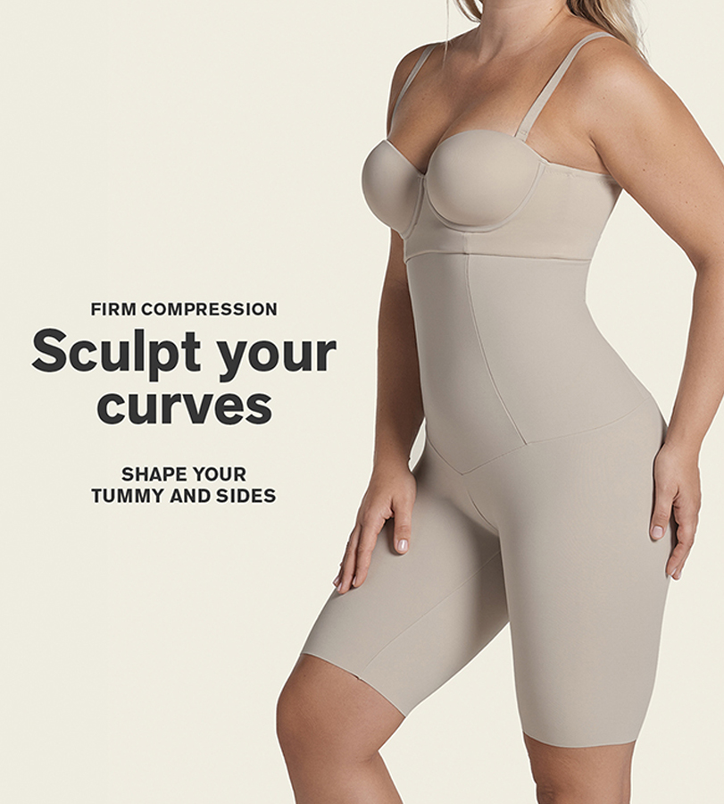 أي المناطق يشد وينحت؟ الجذع والخصر، استعيني به ورحبي بمظهر الساعة الرملية! هذا التأثير يعزى للبطانة المصنوعة من أنسجة PowerSlim® الناحتة، والمتركزة في النصف العلوي من المشد.