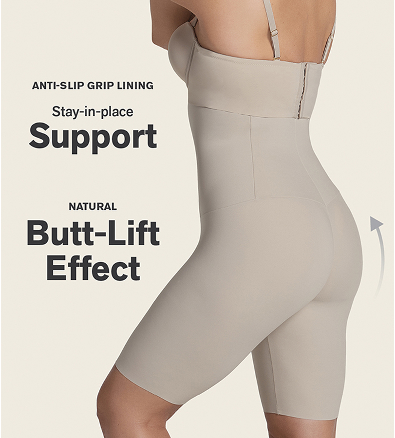 هل سيعرفون أني أرتدي مشد؟ لا، هذا المشد خفي. فبطانة الحواف العلوية مصنوعة من السيليكون المقاوم للانزلاق، والنصف السفلي خالي من الحياكة.