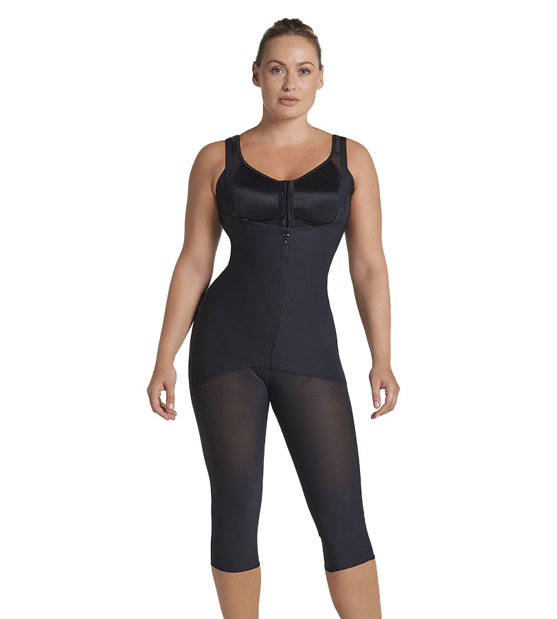 اجمل مشد شريته من جهه الجذع و البطن طبقتين تشد و تنحت اكثر و داخليه قطن عشان العرق ما ياذي و من عند المؤخره القطعه الي تدعم رهيبه في الرفع فيه مشابك تحت السحاب الامامي فيه فتحه سفليه عشان ما يضايق و لقضاء الحاجه