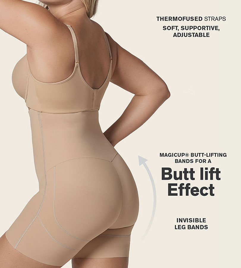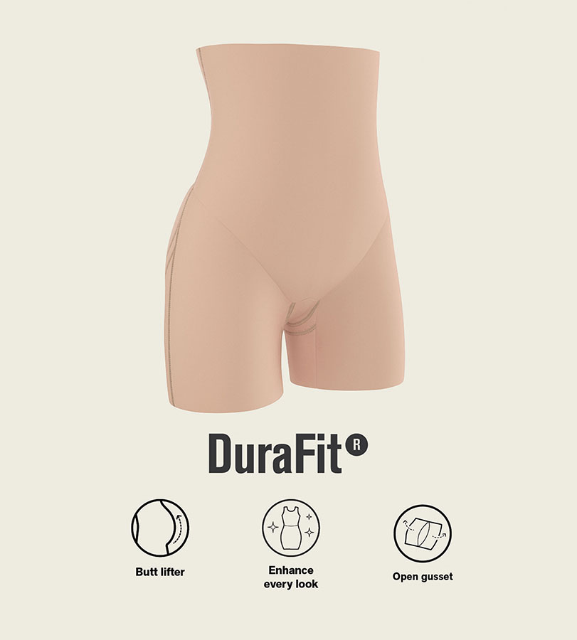 المشد مصنوع من قماش الا DuraFit® الفائق النعومة، وعالي الضغط، كما يمنح المؤخرة رفعة جميلة أنثوية وجذابة.